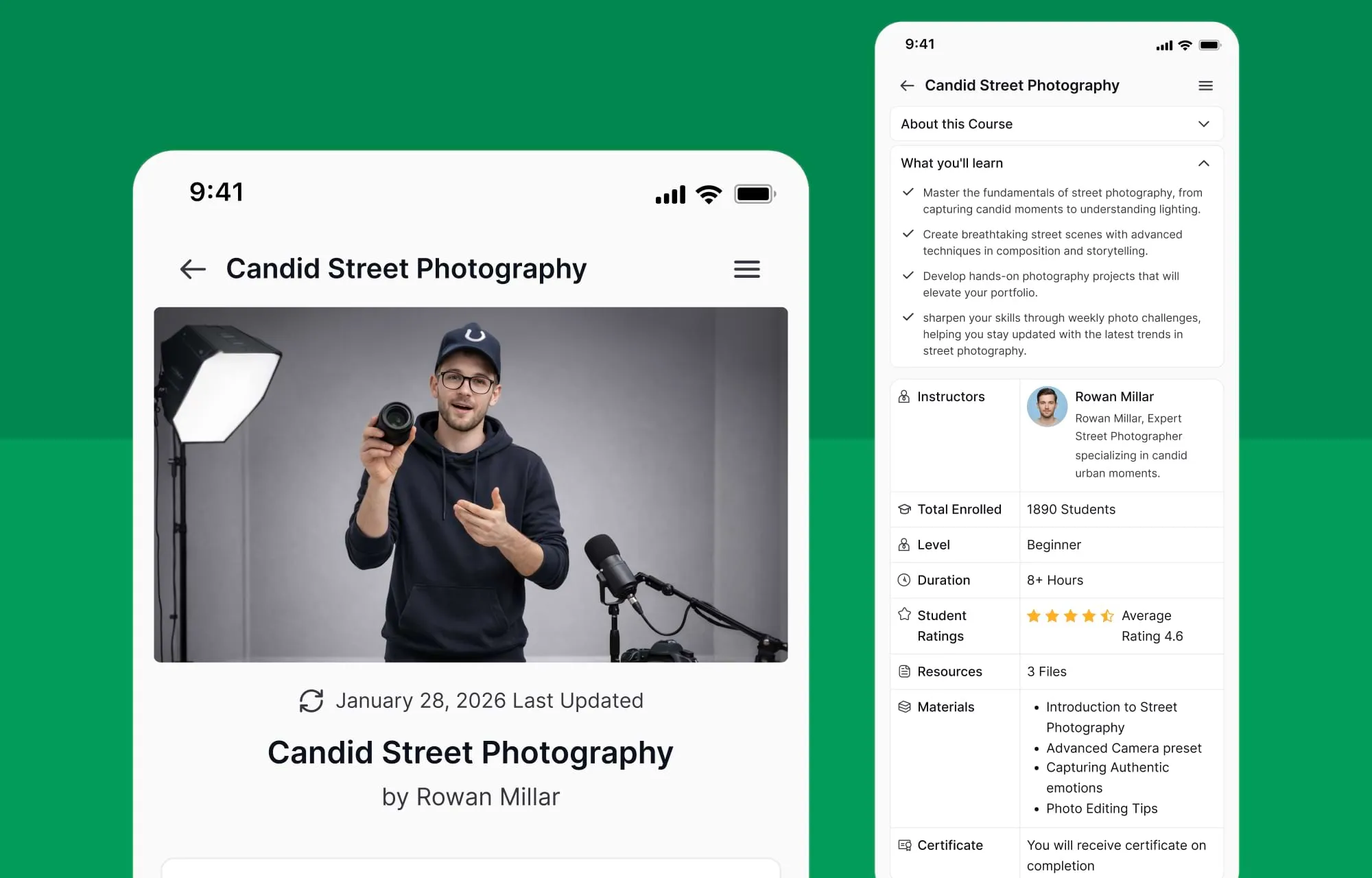 The instructor profile experience has also been modernized, offering a cleaner and more professional presentation.