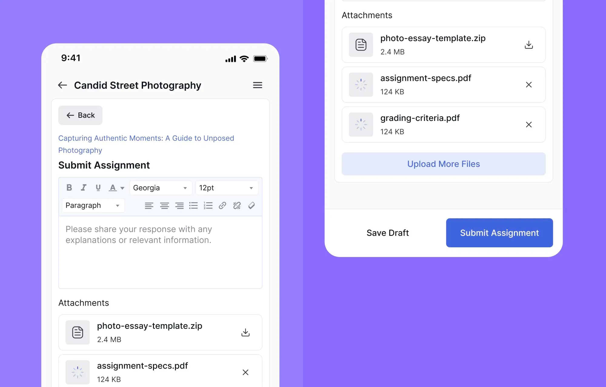- Submit & Resubmit: Learners can submit assignments easily and, if needed, resubmit them without hassle.
