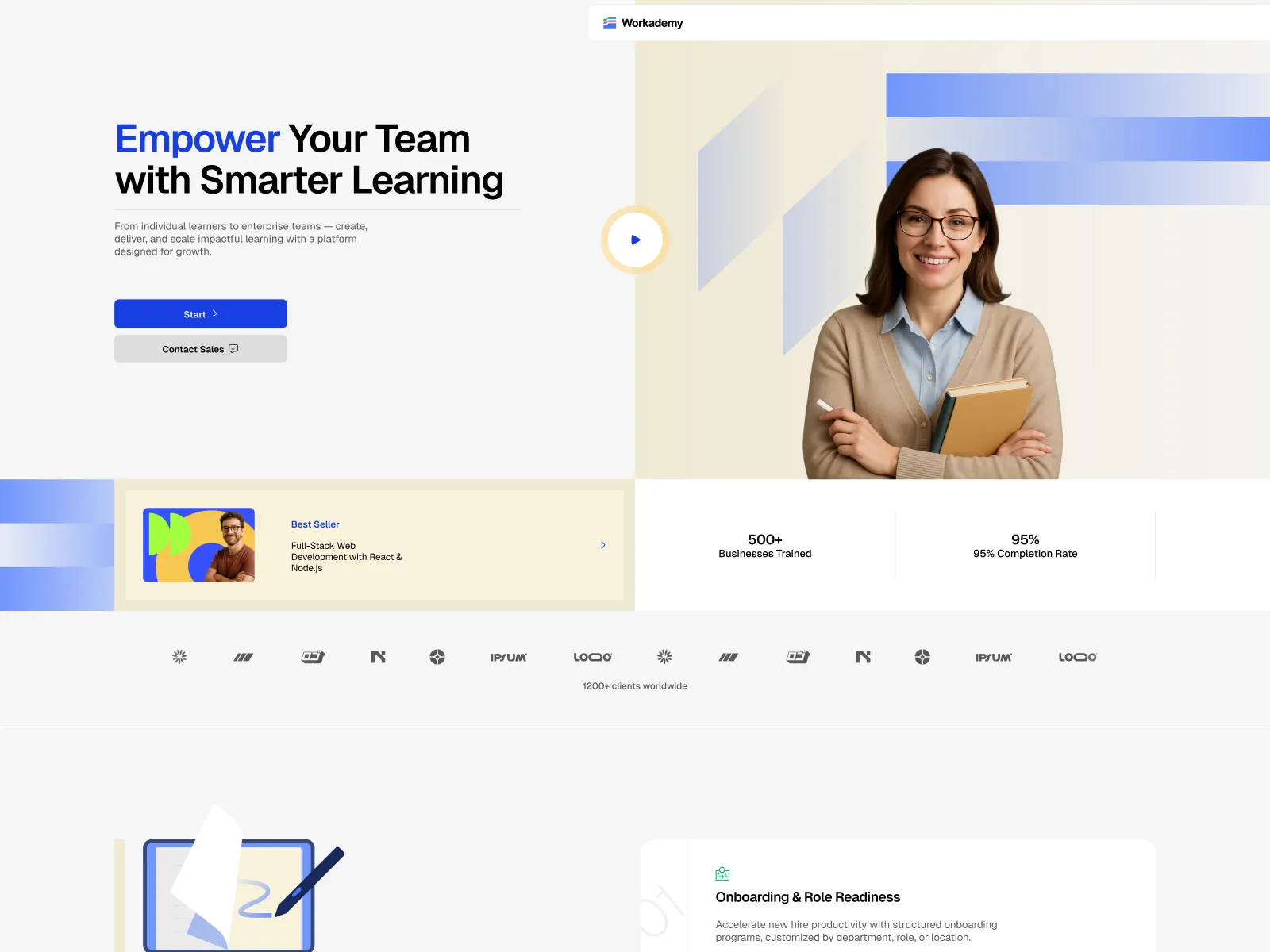 Powered by Droip, Workademy gives you complete visual control over every design detail. You can customize every section, add advanced animations, set different fonts, layouts, etc, without touching code. From showcasing training programs to tracking progress and boosting learner engagement, Workademy is built to grow with your organization and help your teams succeed.