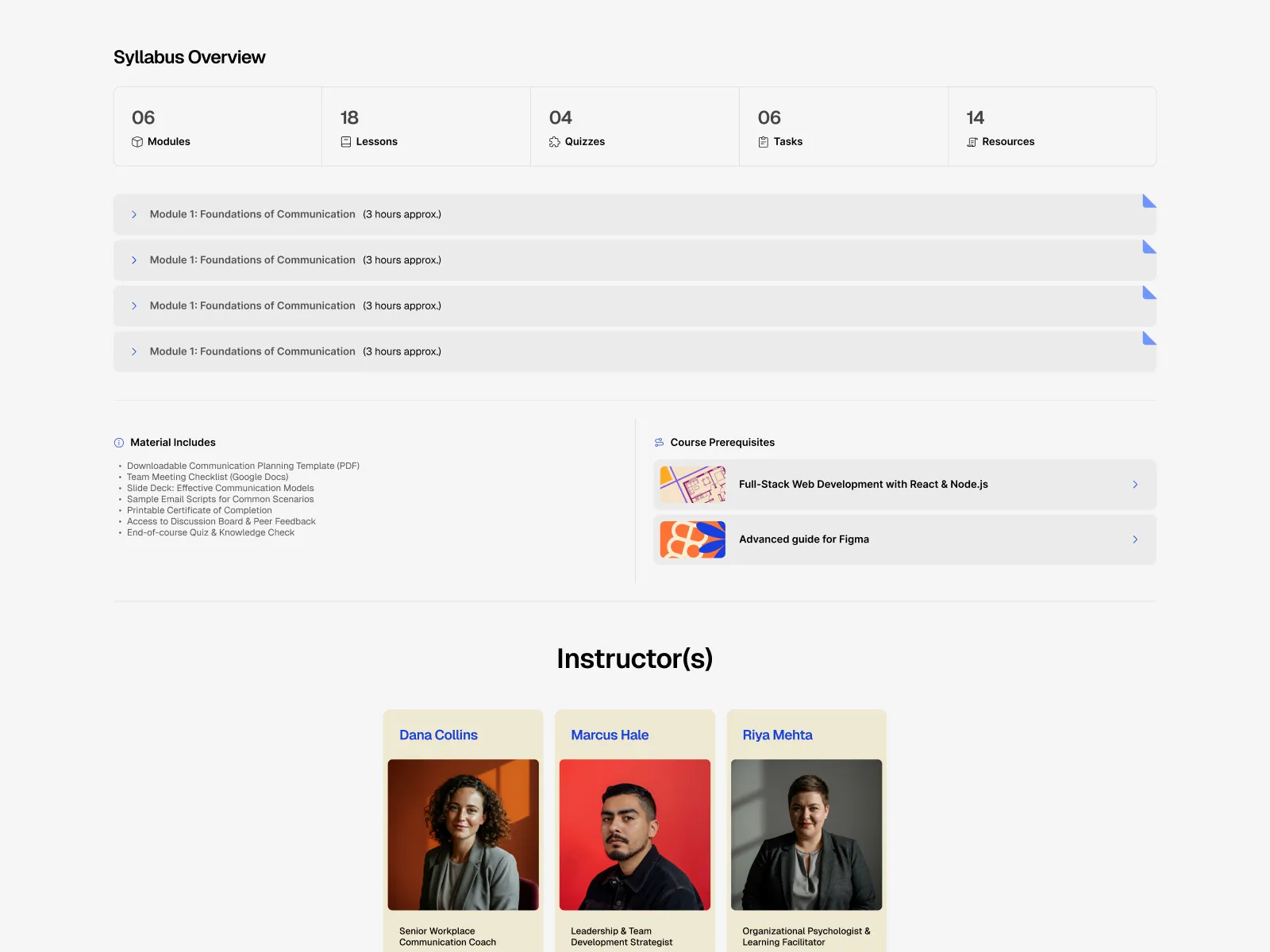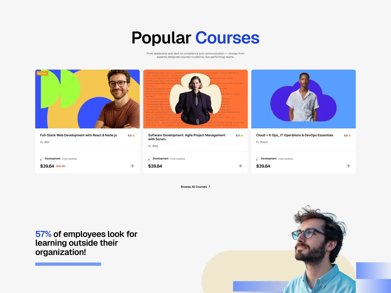 Use reusable components like course cards, testimonials, header, footer, etc., across multiple pages. Update once, and the changes reflect everywhere.
